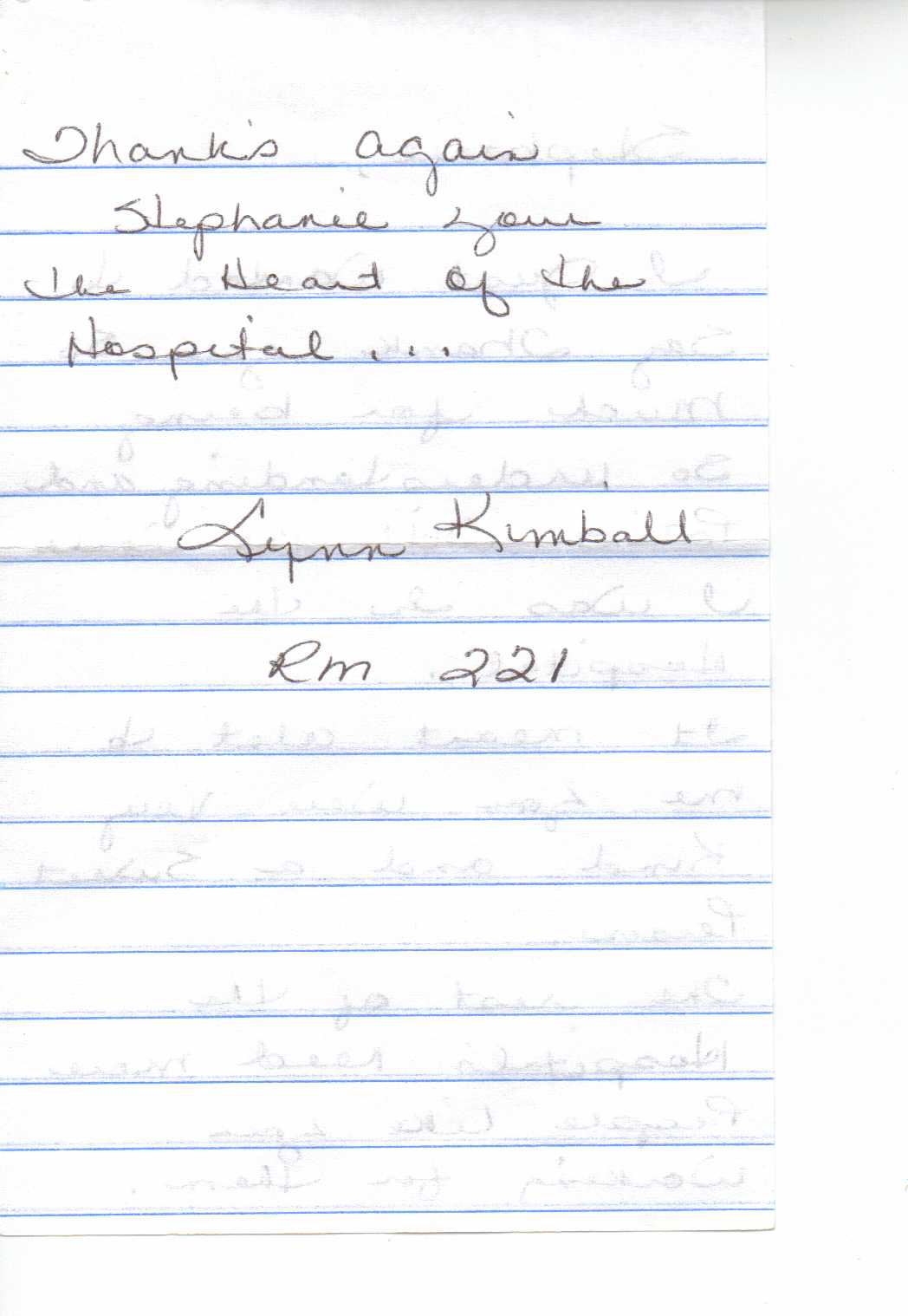 Comments/Comentarios : You are the greatest nurse ever! Thank you for taking such good care and explaining everything to me while I was in the hospital!!! I have told everyone how great you are. You are a blessing to all. Love you!!!!